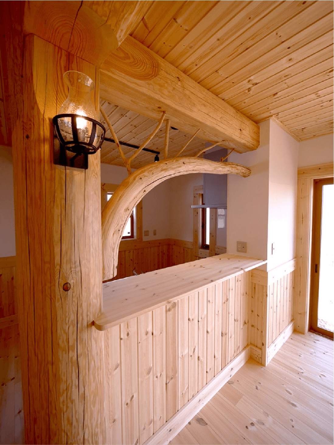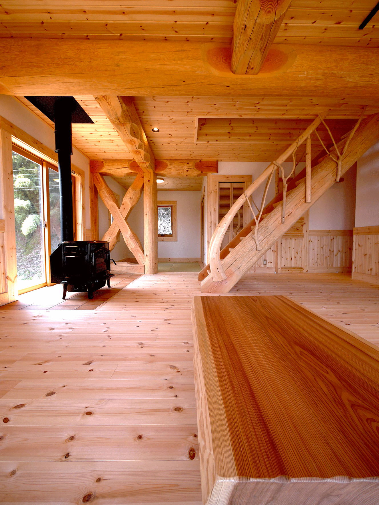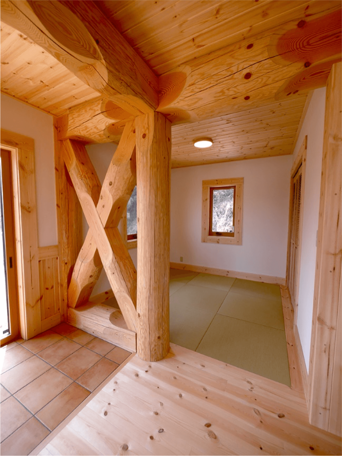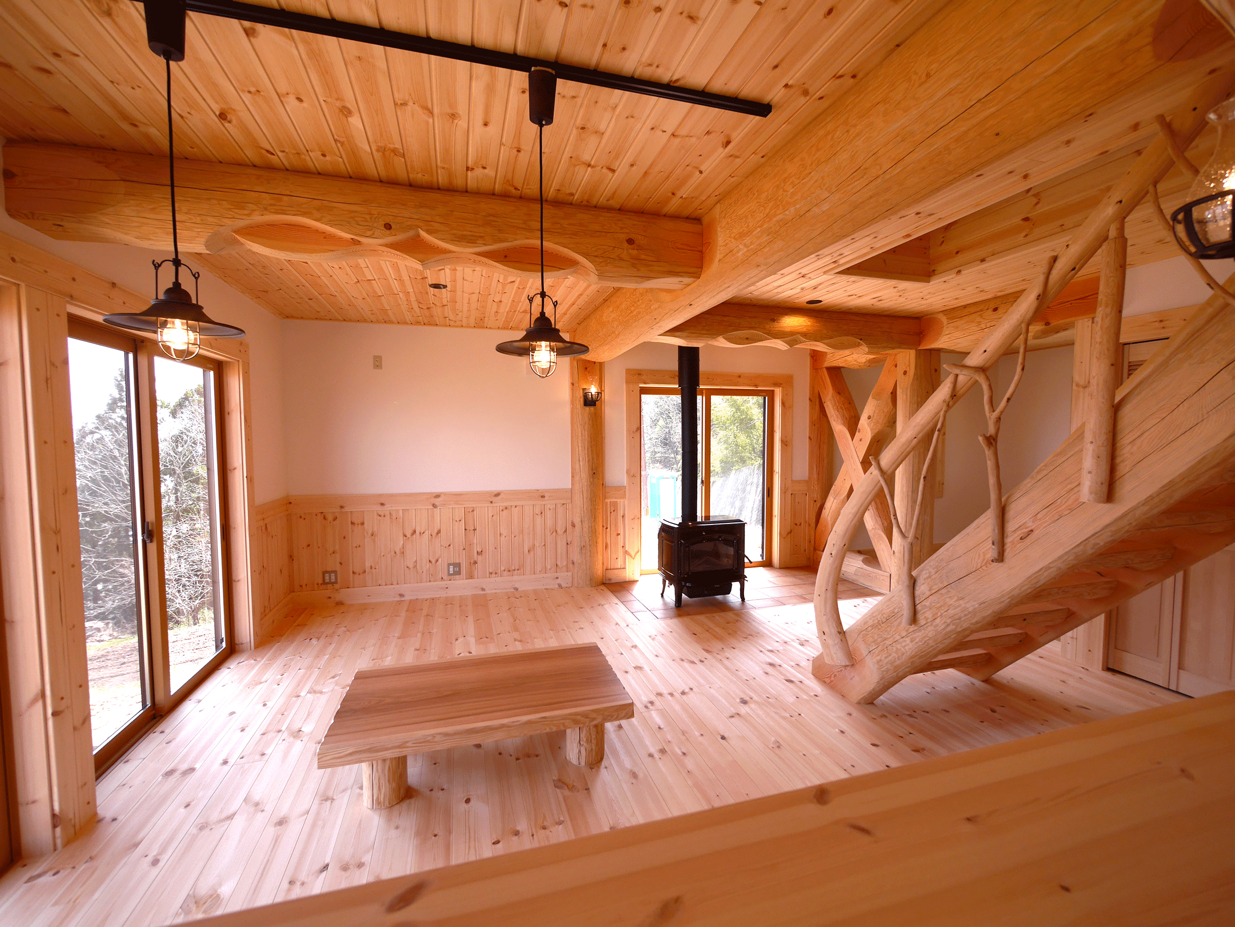 丸太の色をダークにすることで古民家風に。