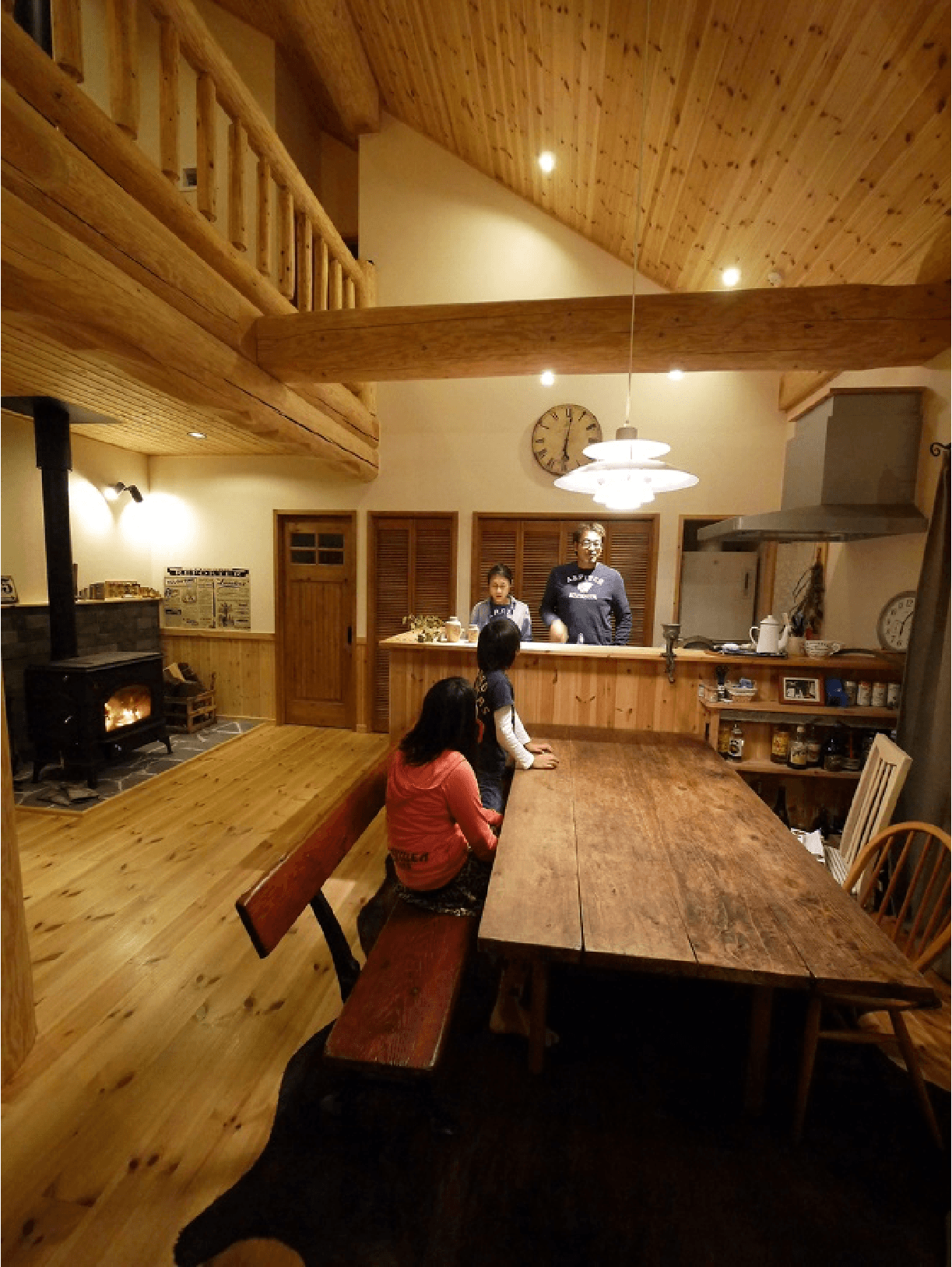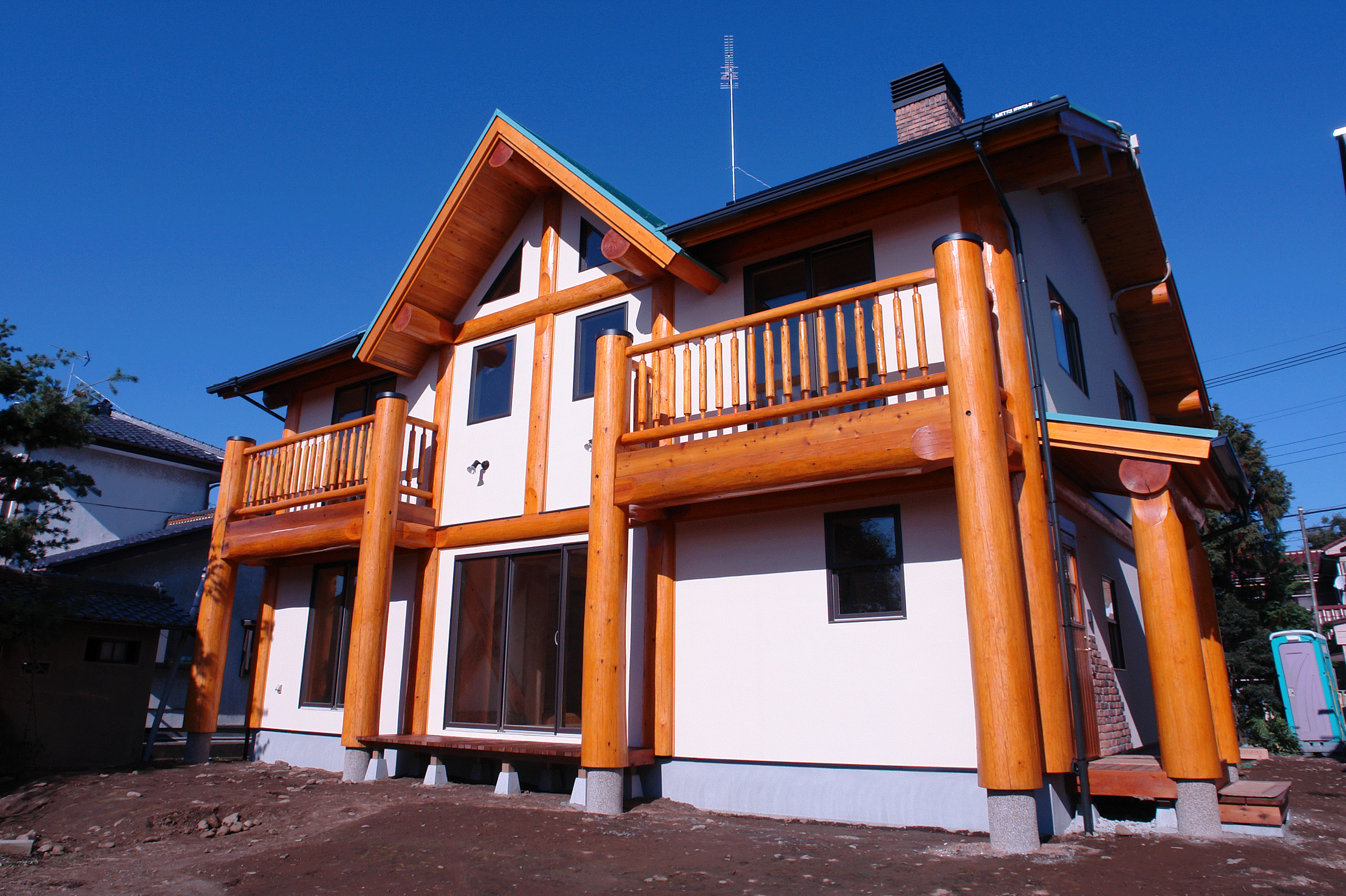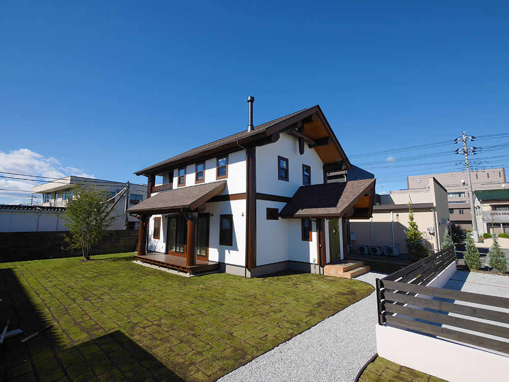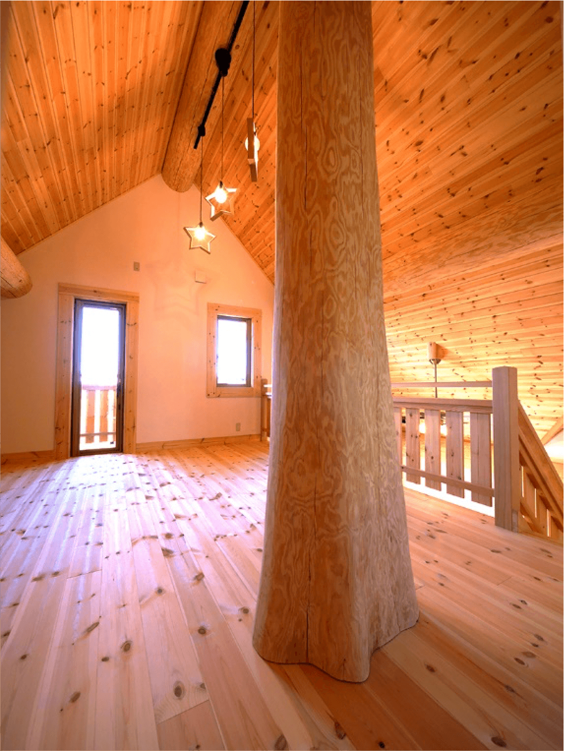 丸太の色をダークにすることで古民家風に。